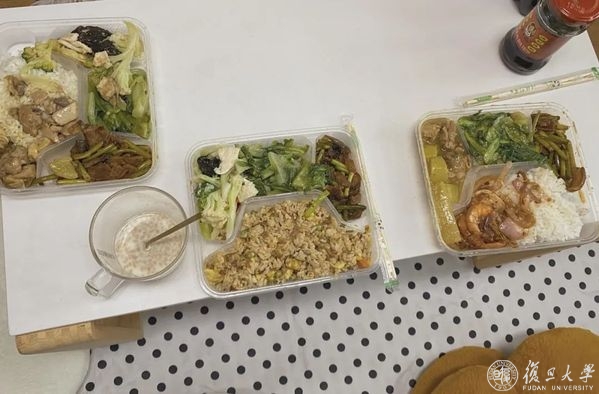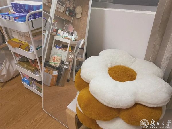 在寝室里,室友们每天会围着这张白色小桌一起吃饭、聊天,有时还会在这张桌子上一起看电影、刷刷剧。除了学校分发的水果、牛奶,移动架子上还放着她们通过“复旦云超”抢购到的的番茄牛肉粉、可乐、海苔等小零食。下单买零食的经历,也让她们在特殊时期里多了一份特别的小快乐。自“复旦云超”微信小程序上线以来,下午一点准时上线抢购,成了326寝室的必做项目。