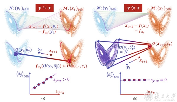 然而,当前对于因果关系的科学定义存在多种不同的定量刻画,对应的检测方法也具有很多实质性完善的空间。于2022年5月4日发表于Research(Volume 2022,Article No. 9870149)的工作中,复旦大学数学学院、智能复杂体系基础理论与关键技术实验室林伟教授团队从因果关系的数学刻画——变量间的动力学迭代函数关系出发,基于分析学基础和动力学理论,提出了动力学因果框架——连续性标度,以动力学迭代函数本身的连续性来严格度量动力学因果关系。这一数学刻画化解了一直以来该领域的疑问:“为什么在动力学因果关系探测中‘用果投射因’,而在传统时间序列因果分析中‘用因评价果’?”。