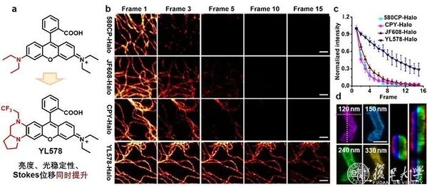 复旦大学药学院王璐课题组与湖南大学袁林课题组在新式超分辨成像荧光探针领域取得进展。研究项目协同TICT作用抑制策略和不对称染料策略,可同时改进染料亮度、光稳定性以及Stokes位移以用于STED超分辨荧光成像。相关成果以全文形式发表在权威期刊 Nature Communications。