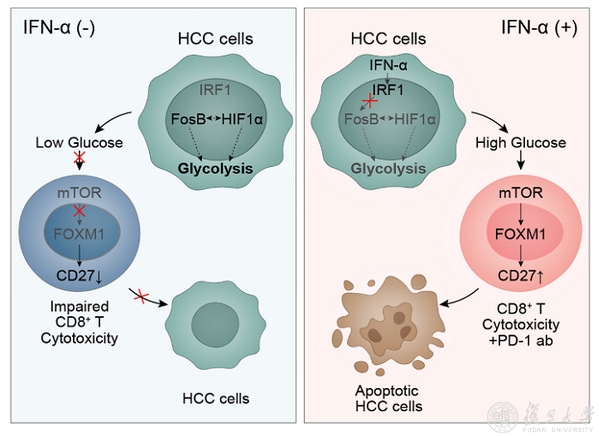 4月12日,国际顶级肿瘤学期刊 Cancer Discovery 在线发表复旦大学附属中山医院樊嘉院士团队与复旦大学药学院朱棣课题组合作的最新药理学研究成果“干扰素α改善糖代谢和免疫微环境”,该研究开展了干扰素α和PD-1抗体联用的药理学机制研究,为肝细胞癌(HCC)的治疗提出了一种提高抗PD-1抗体疗效的联合治疗新策略。