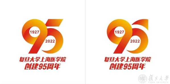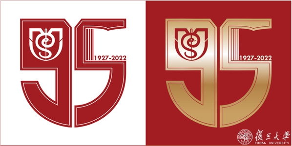 院庆标识以复旦大学上海医学院院徽核心元素“盾牌和阿斯克勒庇俄斯蛇杖”与同心圆、线条组合设计的数字“95”符号,体现95年庆的喜庆氛围;院徽核心元素嵌含在数字“9”中,体现复旦大学上海医学院特色;院庆标识下面是“复旦大学上海医学院”标准字体、“95周年院庆”、英文“The 95th Anniversary of Shanghai Medical College, Fudan University”及“1927-2022”,均体现院庆主题。数字“9”又形如逗号,寓意复旦大学上海医学院向前发展的美好前景。整体设计运用院徽标准色,一脉相承;整体彰显复旦大学上海医学院办学历程中积淀的学院气质和精神文脉,整体设计表现形式简洁明快,富有美感和视觉冲击力。