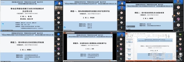 2022年5月14日,国家重点研发项目“网络空间安全治理”重点专项 ——“移动应用隐私收集行为的分析检测技术及应用示范”项目启动暨实施方案论证汇报在线上召开。项目由复旦大学牵头,负责人为杨珉教授,参与单位包括暨南大学、北京百度网讯科技有限公司、中国电子技术标准化研究院、中国网络安全审查技术与认证中心、武汉大学、湘潭大学、北京安天网络安全技术有限公司、华为技术有限公司。