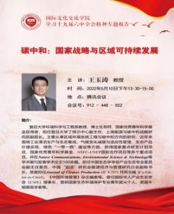 2022年5月10日下午,国际文化交流学院党委线上组织开展了十九届六中全会精神学习专题报告暨教职工理论学习活动。 本次报告会邀请了国家优秀青年科学基金获得者、复旦大学环境与工程学系教授王玉涛作专题报告。报告的主题为“碳中和:国家战略与区域可持续发展”。学院110位师生在线参加了本次专题学习,学院党委书记王颖主持。