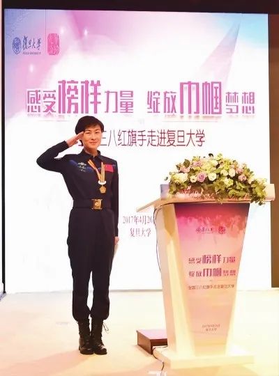 2017年4月26日,中国首位女航天员刘洋作为全国三八红旗手来到复旦大学,与学生交流。