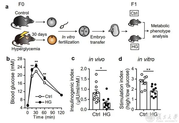 2022年5月19日,Nature在线发表了主要由黄荷凤教授与徐国良教授领衔、由浙江大学、复旦大学、中科院上海生命科学院与交通大学等多家单位合作完成的研究工作的最新研究成果“Maternal inheritance of glucose intolerance via oocyte TET3 insufficiency”。该研究揭示了孕前期的高糖环境可诱导卵母细胞中母源效应因子DNA双加氧酶TET3 (tet methylcytosine dioxygenase 3) 表达降低和功能减弱,改变胚胎DNA甲基化谱式,进而引发子代成年后胰岛素分泌相关基因等表达受限,最终导致子代呈现葡萄糖耐受不良。该工作提示卵母细胞TET3的正常功能可决定子代长期健康。