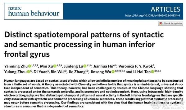 12.附属华山医院神经外科吴劲松团队合作研究揭示汉语句法和语义加工神经机制