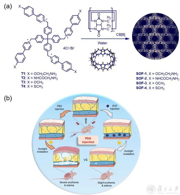 3.化学系黎占亭教授团队利用三维超分子有机框架抑制光动力治疗药物的光敏副作用