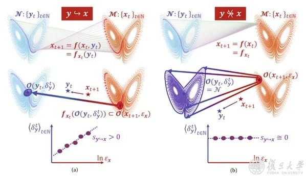 复旦大学数学学院、智能复杂体系基础理论与关键技术实验室林伟教授团队从因果关系的数学刻画——变量间的动力学迭代函数关系出发,基于分析学基础和动力学理论,提出了动力学因果框架——连续性标度,以动力学迭代函数本身的连续性来严格度量动力学因果关系。成果以“Continuity Scaling: A Rigorous Framework for Detecting and Quantifying Causality Accurately”为题于2022年5月4日发表于Research(Volume 2022,Article No. 9870149)期刊上。这一数学刻画化解了一直以来该领域的疑问:“为什么在动力学因果关系探测中‘用果投射因’,而在传统时间序列因果分析中‘用因评价果’?”。