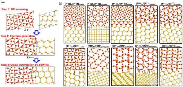 近期,化学系李晔飞和刘智攀提出了一种基于机器学习计算的界面结构预测方法(ML-interface),解决了不同晶体间界面结构预测的难题。该方法基于唯象理论、图论、全局势能面搜索和机器学习势函数等理论计算方法,仅需不同材料体相晶胞的晶体结构作为输入参数,即能可靠预测任意可能界面的原子结构。李晔飞和刘智攀从数千个候选结构对象中解析出了所有稳定 Si/SiO2界面结构。相关研究成果以《基于机器学习的全局势能面搜索方法确定可抑制量子隧穿的最小稳定的Si/SiO2界面》(“Smallest stable Si/SiO2 interface that suppresses quantum tunneling from machine-learning-based global search”)为题在线发表于最新一期《物理评论快报》(Phys. Rev. Lett.)。