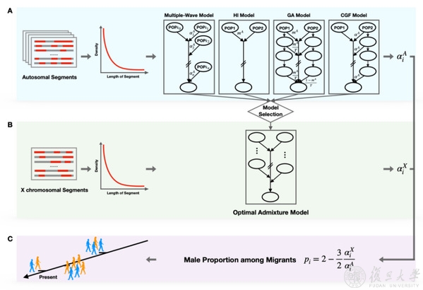 2022年5月23日,生物信息学专业期刊Briefings In Bioinformatics在线发表了复旦大学生命科学学院徐书华团队的研究成果“MultiWaverX: Modeling latent sex-biased admixture history ”。该项工作提出了一种新方法MultiWaverX,可推断人群性别偏向性混合历史,并应用该方法分析和重构了中亚地区、中东地区以及美洲大陆的17个人群的性别偏向性基因交流历史。