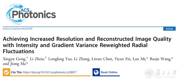 2022年5月9日,复旦大学光科学与工程系马炯/糜岚课题组在期刊ACS Photonics以Article形式在线发表题为“Achieving Increased Resolution and Reconstructed Image Quality with Intensity and Gradient Variance Reweighted Radial Fluctuations”的文章。该研究在荧光涨落超分辨技术中首次引入梯度统计方差分析,形成一种新型的超分辨显微成像技术VRRF,该技术大幅提高了生物荧光图像重构质量和分辨率。