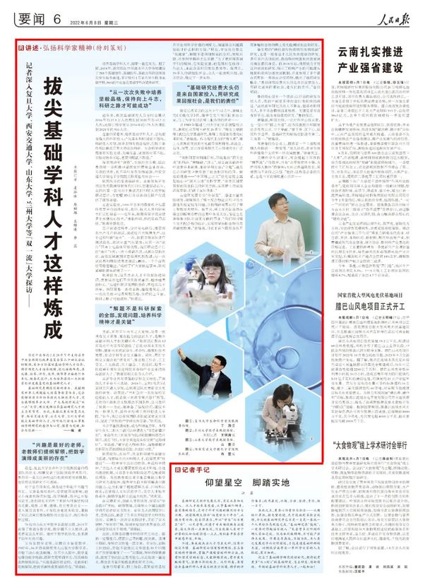 基础研究是科技创新的源头。我国拥有世界上规模最大的高等教育体系,完全能够源源不断培养造就大批优秀人才,完全能够培养出大师。广大高校特别是“双一流”大学,理应发挥培养基础研究人才的主力军作用。为此,本报记者采访复旦大学、西安交通大学、山东大学、兰州大学的拔尖基础学科人才,倾听他们讲述从事基础学科研究的感悟与心得、探索与突破、融合与创新……