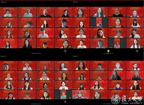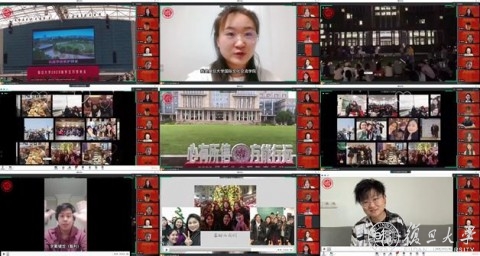 在热烈的掌声中,大家在线上“云合影”,共同纪念毕业时分难忘的相聚与珍贵的时光。最后,郑阳老师介绍了由学院同学亲手设计,以及学院为本届毕业生们精心筹备的毕业礼物,宣布典礼活动结束。典礼简洁隆重而温馨,在《今生永相伴》的告别音乐声中,在复旦校训“博学而笃志,切问而近思”,复旦精神“团结 服务 牺牲”的落幕页面下,同学们纷纷表达自己对学校和学院、老师们的感谢,在与会老师们的目送祝福下依依不舍地离场。