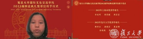 6月16日下午三点,复旦大学国际文化交流学院举行2022届云端毕业典礼暨学位授予仪式。学院领导班子、学生导师、本研毕业班辅导员以及分布在全球各地的本研2022届全体毕业生们124人参加了活动。