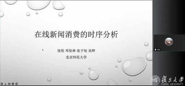 北京师范大学艺术与传媒学院张伦副教授报告了题为“在线新闻消费的时序分析”的相关研究。该研究应用计算传播方法,以封面新闻3800万余受众新闻浏览数据为数据集,从时序视角分析了新闻消费行为随时间发展的变化趋势和状态转移规律。通过贯序研究,发现用户在新闻消费时的参与深度差异,同时发现技术干预对于个体行为存在显著、缓慢且稳定的影响。
