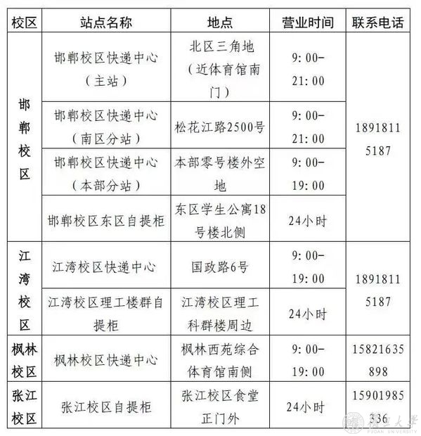 暑假期间四校区快递服务正常运行,营业时间不做调整。