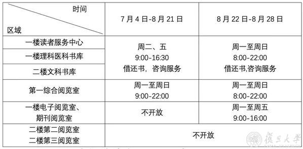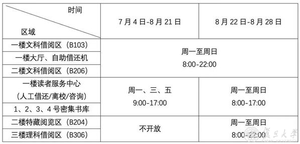 7月4日至8月28日期间开放第二教学楼二楼教室自修。开放时间:7:00-22:30