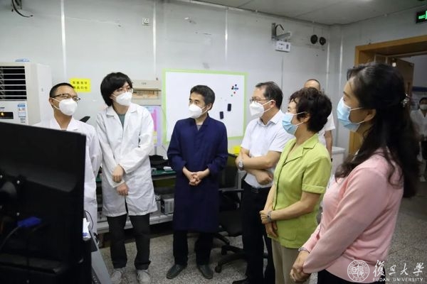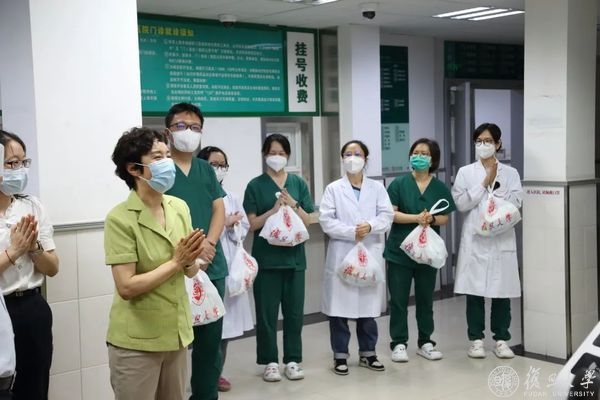 7月15日下午,校长金力、副校长张人禾前往江湾校区,看望慰问高温下坚守一线的师生员工。