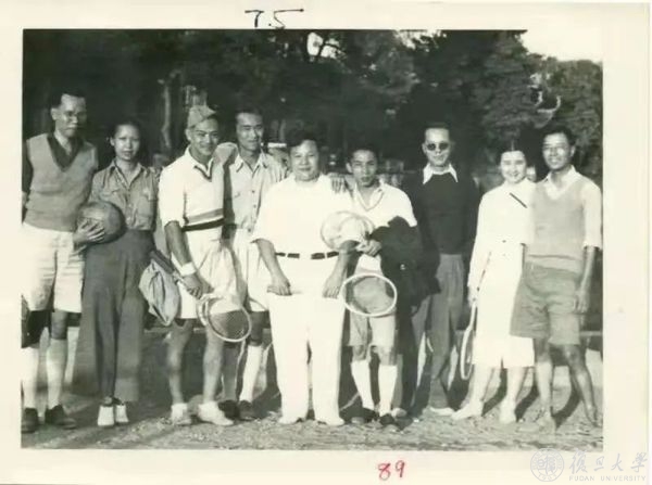 青年时代的荣独山(左五)酷爱打网球(拍摄于1933年)