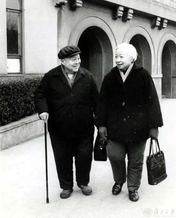 荣独山、林飞卿夫妇在上医东一号楼前合影