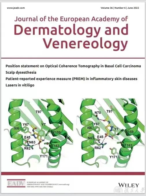 近日,复旦大学附属华山医院变态反应科骆肖群教授团队在最新一期皮肤科业内权威杂志The Journal of the European Academy of Dermatology and Venereology(《欧洲皮肤性病学会杂志》)以ORIGINAL ARTICLE(原创文章)形式,以《中国汉族人群中HLA-B*59:01和HLA-B*55:02等位基因所共有的核苷酸序列与醋甲唑胺诱发的Stevens-Johnson综合征和中毒性表皮坏死松解症相关》(“Unique motif shared by HLA-B*59:01 and HLA-B*55:02 is associated with methazolamide-induced Stevens–Johnson syndrome and toxic epidermal necrolysis in Han Chinese”)为题,发表了关于汉族人群基因序列与药物醋甲唑胺诱发特定重症药疹相关性的研究文章。杂志将该研究结果图作为杂志封面,并在同期杂志中发表了台湾学者对于本研究的评论文章。