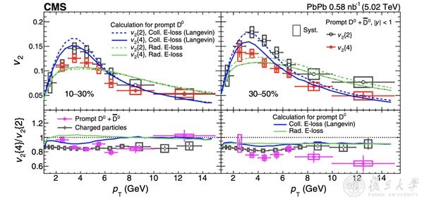 近日,我校现代物理研究所马余刚团队张留耀博士后在重味粲介子流领域的研究中取得重要进展。成果以“Probing Charm Quark Dynamics via Multiparticle Correlations in Pb-Pb Collisions at = 5.02 TeV” 为题发表在《物理评论快报》(Phys. Rev. Lett. 129.022001 (2022))上。此项工作首次通过四粒子方位角关联方法测量得到在质心能为5.02TeV下铅核-铅核碰撞产生的粲介子椭圆流。该成果是基于大型强子对撞机上紧凑型缪子螺线管(CMS)探测器完成。