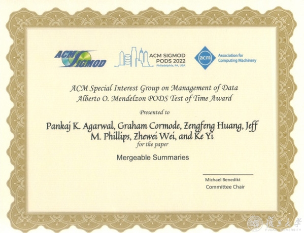 1.大数据学院青年研究员黄增峰获ACM数据库理论顶级会议PODS 2022 时间检验奖