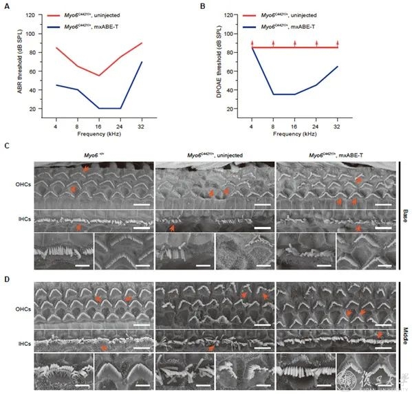 近日,国际顶尖期刊《科学转化医学》(Science Translational Medicine)在线发表了我校附属眼耳鼻喉科医院舒易来主任、李华伟教授和中科院脑智卓越中心杨辉研究员合作的研究论文“Rescue of autosomal dominant hearing loss by in vivo delivery of mini dCas13X-derived RNA base editor”。该研究基于新型的RNA编辑工具dCas13X,研发了精准治疗显性遗传性耳聋的前沿技术——针对常见显性遗传性耳聋基因肌球蛋白(MYO6)的RNA单碱基编辑器(mxABE),成功改善了动物模型的听力。这是国际上首个基于RNA单碱基编辑技术成功精准治疗显性遗传性耳聋的研究,为耳聋的精准治疗以及安全的临床转化提供了有力的科学证据。