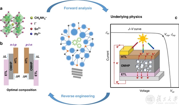 近日,我校信息科学与工程学院詹义强教授、张浩副教授研究团队及其合作者提出并实现了一种基于正-反向框架的新型机器学习方法,基于文献收集数据,建立MASnxPb1-xI3钙钛矿体系的关键参数与光伏性能之间的关系,进而实现锡铅混合钙钛矿太阳能电池的光伏性能调优。该工作以“Data-driven design of high-performance MASnxPb1-xI3 perovskite materials by machine learning and experimental realization”为题,于2022年7月在线发表于Light: Science & Applications。
