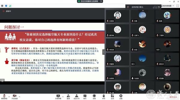 航空航天系博士生党支部全体成员以“心有所信,方能远‘航’”为主题开展暑期社会实践,“云走访”深入走进中国商用飞机有限责任公司等九家空天领域重点单位,在考察调研、校友访谈中体悟过去十年以来我国坚持科技自立自强。支部党员王瑛瑞说:“我参访的单位是上海航天控制技术研究所,在气象卫星领域我国已经达到世界先进水平,但与最先进国家还存在一定差距,正因如此,才更需要青年党员扎实理论基础,以不怕苦、不怕累的精神投入到国家空天事业中去,永远做新时代中国空天事业的奋斗者、攀登者。”