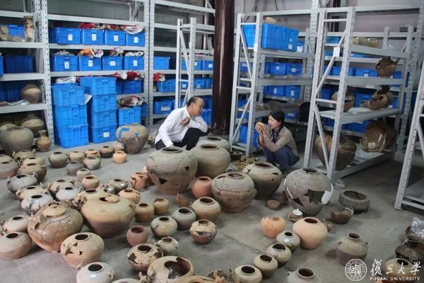 郝雪琳与杨金东老师在杭州萧山进行东蜀山汉墓出土陶瓷器整理