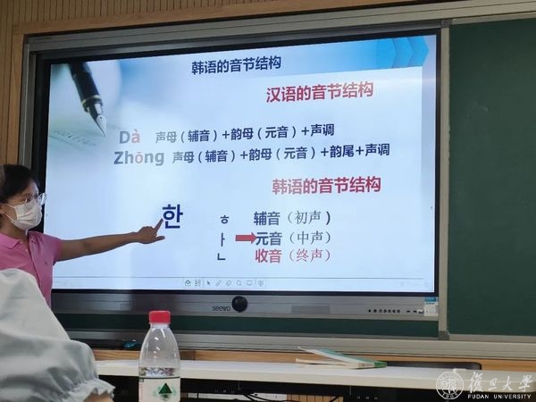 课上,授课老师介绍完自己后,便让同学们进行自我介绍,互相认识,而后通过PPT向大家介绍本学期的课程,并初步阐释了朝鲜语与汉语的联系和区别。“第一堂课,整体氛围比较轻松愉悦。怀着激动的心情上完了第一课。我认识到学习一门全新的语言对于我来是一种挑战,但我会直面挑战,认真听每一节课,攻克每一个知识点。”罗天一期待在复旦度过充实而有趣的每一天。