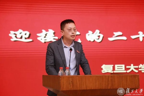 师道传承,接续奋斗。今年,又一批新教师加入复旦大家庭,他们接过前辈们手中的接力棒。会上,刘雯为新入职教师代表、经济学院讲师王熙麟佩戴代表校徽,王熙麟向刘雯献花并发言。