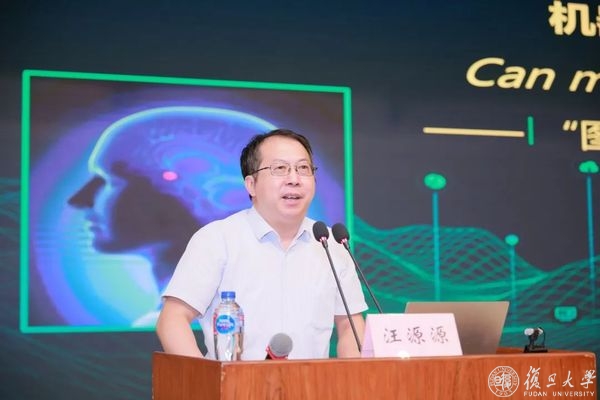 副校长汪源源教授致欢迎辞。随后,于全院士带来精彩报告,对图灵于1950年发表的论文《计算机器与智能》进行了全面解读。众所周知,图灵在现代计算机科学领域做出了巨大贡献,被誉为人工智能之父,他在该论文中提出了著名的图灵测试,并从神学、伦理、数学、哲学、能力、创新、生物、人性、超灵这九大质疑观点加以论证。长期以来,这一测试被认为是判断机器思考能力的一个标准,但漫长的发展历程中出现了大量的“伪图灵测试”迷惑视线。于院士通过一系列思考和分享,全方位多角度地认知和解读了图灵猜想,并以“机器能否思考”这个关乎科学问题、哲学问题、人类终极命运的问题对未来计算机科学发展的引领进行展望。最后于院士对复旦学子提出希冀,希望大家能独立思考,以批判思维、开放包容的态度面对世界和人生,这也是在复旦学习中最有意义的事情。