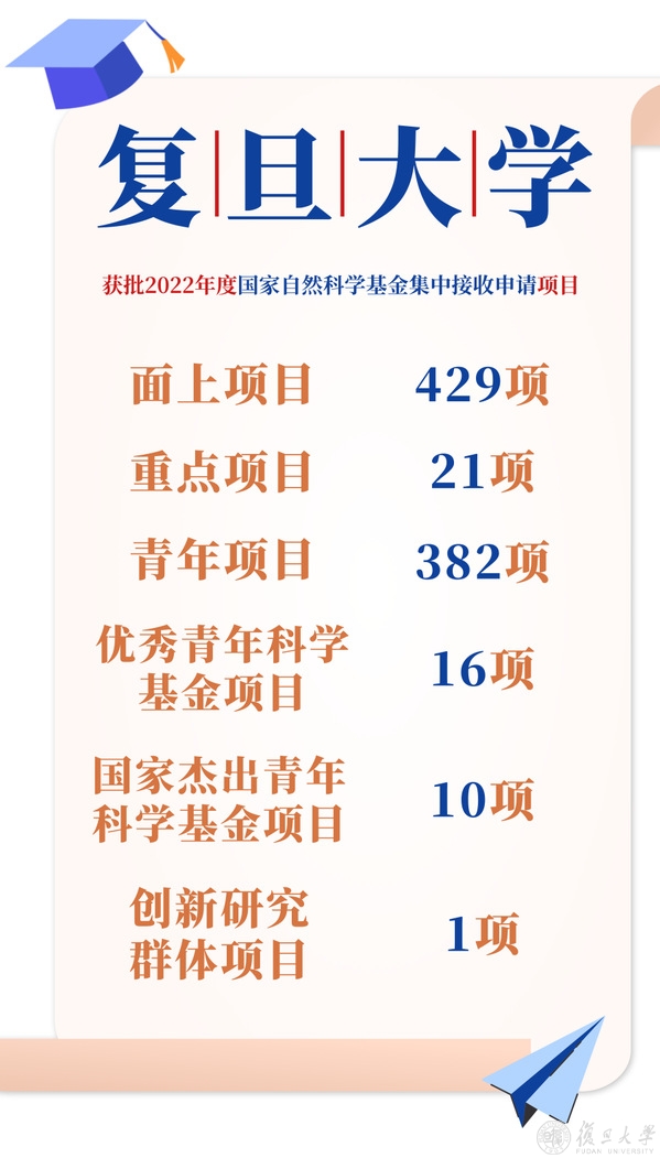 近日,2022年国家自然科学基金集中接收申请项目评审结果公布。复旦大学3项国家自然科学基金基础科学中心项目正式获批,创历史最好成绩!复旦大学本年度还获批各类科学基金项目共 874 项,创年度同期获批项目数和经费数历史新高。