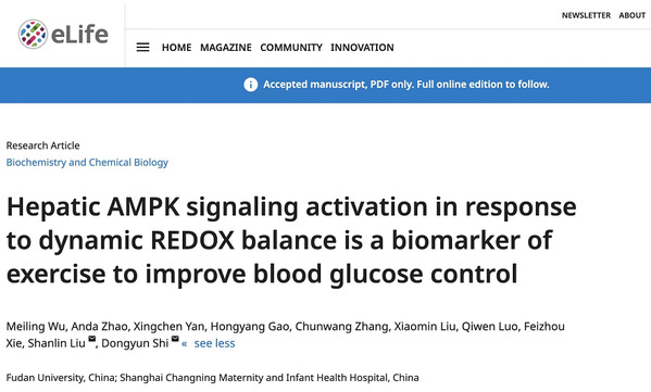 近日,复旦大学基础医学院施冬云教授课题组在eLife杂志上发表了题为 Hepatic AMPK signaling activation in response to dynamic REDOX balance is a biomarker of exercise to improve blood glucose control的文章。作者通过对2型糖尿病大鼠进行运动和抗氧化剂干预的比较,首次发现适度的运动可以通过提高补偿性抗氧化能力,从而在肝脏中达到较高水平的氧化还原平衡。相反,抗氧化剂干预通过抑制氧化应激实现低水平的氧化还原平衡。这两种干预措施都可以通过激活肝脏AMPK信号来促进葡萄糖分解代谢和抑制糖异生,从而改善糖尿病,维持机体健康稳态。该论文被遴选为“eLife digest”科学文摘评述报道。