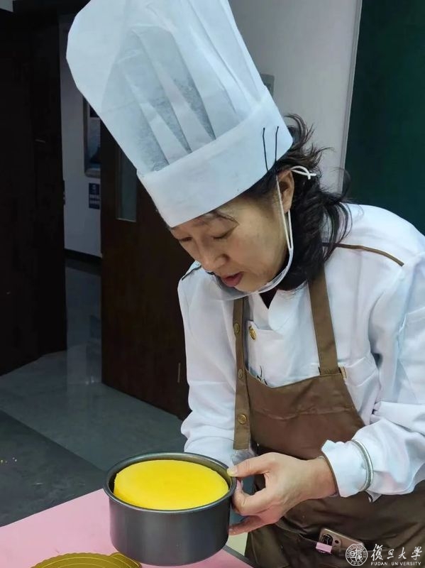 我喜欢烘焙,一方面喜欢它可爱香甜的气味,另一方面喜欢品尝它的人脸上满足的笑容。我在复旦大学老年大学任教,教大家一些烘焙知识。一开始,因为我的烘焙课堂刚起步,只有一个烤箱和简单的烘焙工具,所需的很多烘焙工具都是我自己从家带。后来学校都帮我配齐了,讲课非常方便,每次授课完教室里都充满了香甜的气息。课上,和复旦的老师们一起谈心聊天,看着大家从烘焙中收获快乐,我也非常开心。