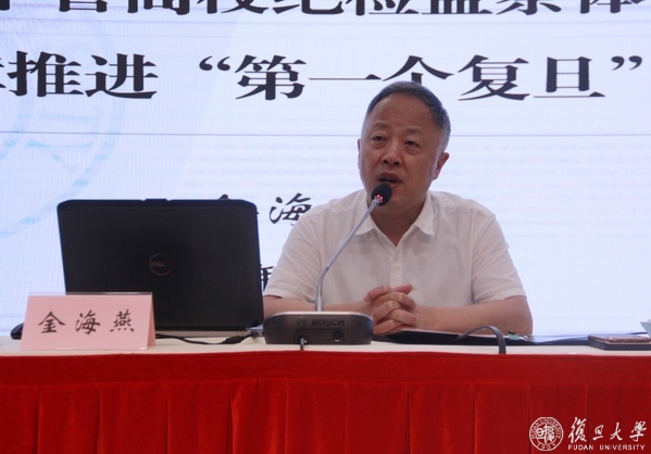 金海燕指出,今年是中管高校纪检监察体制改革的深化之年,在中央纪委国家监委精心部署下,改革相关举措迅速推进,有力提升了中管高校纪检监察工作规范化、法治化、正规化水平。通过改革,一是建立了中管高校管党治党“3+4”的责任体系,进一步明确了各主体的责任,有效强化了中管高校管党治党责任体系;二是重塑了中管高校纪检监察体制,在领导体系、机构设置、职责权限、工作机制等方面实现了系统性变革。在上级纪委监委的领导和校党委的支持下,我校纪检监察机构改革工作正在稳步推进,新的工作机制正在建立完善,改革成效初步显现。金海燕强调,中管高校纪检监察体制改革对队伍建设提出了更高要求,学校纪检监察队伍要时刻对照“忠诚干净担当”的标准,牢记监督第一职责,深刻认识和贯彻“三不”一体推进的全面从严治党重要方略,加强规范化、法治化、正规化建设,从严从实加强自身建设,努力做到政治过硬、本领高强、担当尽责。金海燕要求,全校纪检监察干部要进一步提高站位,认真学习贯彻中管高校纪检监察体制改革精神,以纪检监察工作的高质量发展保障推进“第一个复旦”建设。