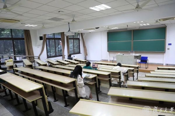 自习室内窗明几净,灯火通明;戴好口罩,隔座而坐;沉浸学习的身影,一如往昔。