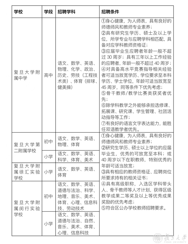 二、复旦大学2023年度基础教育系统教师招聘公告