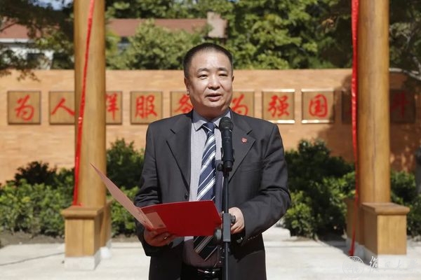 金力在致辞中指出,上医师生和校友始终牵挂着歌乐山,上医也始终与重医保持着密切的联系与合作。抗战迁渝和西迁援建重医的故事已经成为上医人开展爱国主义和理想信念教育的生动教材。今天举行的老校门揭牌仪式,旨在让上医师生铭记前辈创业之艰辛,感悟上医先贤的家国情怀和民族大爱,弘扬“抗战精神”和“西迁精神”。金力强调,上医人要秉承创校先贤的理想,进一步推进医学教育改革创新发展,为国家和民族培养更多有理想、有学识、有大爱的卓越医学人才;要弘扬上医“正谊明道”的院训和“为人群服务、为强国奋斗”的精神,积极投身人民卫生健康事业。