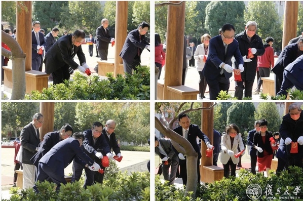 10月19日上午,复旦大学上海医学院福庆广场上,随着一捧捧来自重庆歌乐山的泥土汇入上医的土地,抗战时期上医重庆歌乐山办学纪念校门正式落成揭牌。作为在复旦上医创建95周年之际亮相的又一校园文化地标,这座木结构老校门按照1941至1946年间上医在重庆歌乐山上办学的校舍大门复原建造,承载着老一辈上医人开拓进取、爱国奉献的精神,也象征上医与重医两校之间深厚血脉联系。
