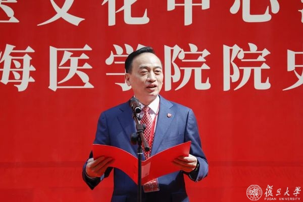袁正宏在致辞中向参与上医文化中心和院史馆建设的相关部门和全体工作人员致谢,感谢大家克服疫情影响,按期高质量完成了相关建设和布展工作。他指出,建设好蕴含丰富精神力量与文化自信的院史馆和上医文化中心是复旦上医文化建设的重大项目。上医文化中心的落成尤其是上医院史馆的全新登场不仅将成为上医人凝心聚力的“初心之地”,也是传承上医精神的“学习之所”,更是开展思政教育的“关键之本”。希望各单位充分用好院史馆的文化和教育功能,把加强院史学习与学习宣传贯彻党的二十大精神相结合,与落实立德树人根本任务相结合,与建设“第一个复旦”、建设世界一流医学院相结合。