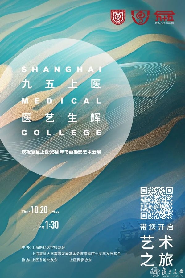 建院以来,上医始终强调对医学生的人文素质教育,培养了一批又一批有着人文关爱与情怀的上医人,他们将艺术融入学习、工作与生活的方方面面。值此九五院庆之际,海内外上医人纷纷响应上医校友会的号召,以书法、绘画及摄影等各种艺术形式表达他们对上医的祝福。在他们的作品中,求学岁月难以忘怀、枫林之美沉稳静谧、上医精神催人奋进。展览还特别邀请了30余位海派艺术家,通过上海复旦大学教育发展基金会陈灏珠院士医学发展基金“医艺承扬大讲堂”项目,捐赠了一批书画作品助力展出。云展不落幕,医艺永生辉。书画摄影艺术云展空间设计灵感来源于上医院徽,希望这场打破时间与空间限制的线上艺术展览,能让观展者无论何时、身处何地都能感受到医学与艺术的魅力。