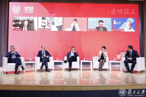 圆桌论坛环节,英国帝国理工学院医学院院长Jonathan Weber,澳大利亚默克多大学副校长Jeremy Nicholson,世界卫生组织助理总干事任明辉,香港大学副校长宫鹏,以及金力、陈志敏、吴凡、毛颖等四位校、院领导,共同围绕医学教育、学科交叉、可持续发展目标、医学转化和国际合作等重点问题开展深入交流。