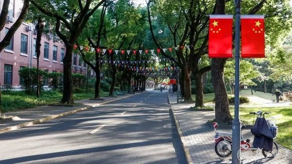望道路是最靠近学校正门的一条马路,东连亭台花木幽香的曦园,西接小桥流水的燕园,望道路的南侧,则是一座望道雕像和因之得名的望道园。望道路上绿树成荫,望道园里绿草茵茵,清净而明媚的环境,与望道园中间矗立的望道雕像相得益彰。