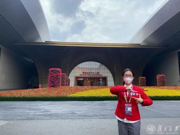 2019级外国语言文学学院英语语言文学专业本科生黄一夏热爱志愿服务,在大学期间参与过11次志愿服务,服务时长超过300小时。在上届进博会中,黄一夏作为复旦“小叶子”担任翻译组志愿者,在本次进博会中,则成为了一名“小叶子”体验官,捕捉、记录志愿者们服务过程中的真实故事和精彩瞬间。