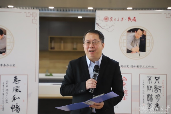 11月1日,战疫——致敬后勤员工书画展正式开幕。复旦大学副校长汪源源出席开幕式并讲话。校书画篆刻研究会常务副会长周桂发,副会长郑召利、刘伟民,理事谭国恩、施正康,总务处、保卫处、工会相关领导和工作人员,以及在校物业、安保、餐饮服务企业员工代表参加活动。