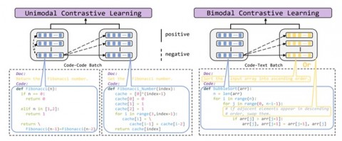 文章针对代码文本对的构建任务提出了单模态和双模态的对比学习策略。对于单模态的对比学习,以无监督的方式根据代码中的自然语言信息,来构建具有相似功能的代码对。对于双模态的对比学习,则利用代码的文档和存在于代码中的零散注释来构建代码文本对。