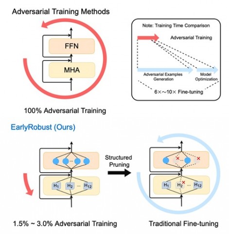 文章提取出结构化稀疏的鲁棒早鸟彩票(即子网络)并设置一个彩票收敛指标来实现一种高效的对抗训练方法,从而提升预训练语言模型鲁棒性。